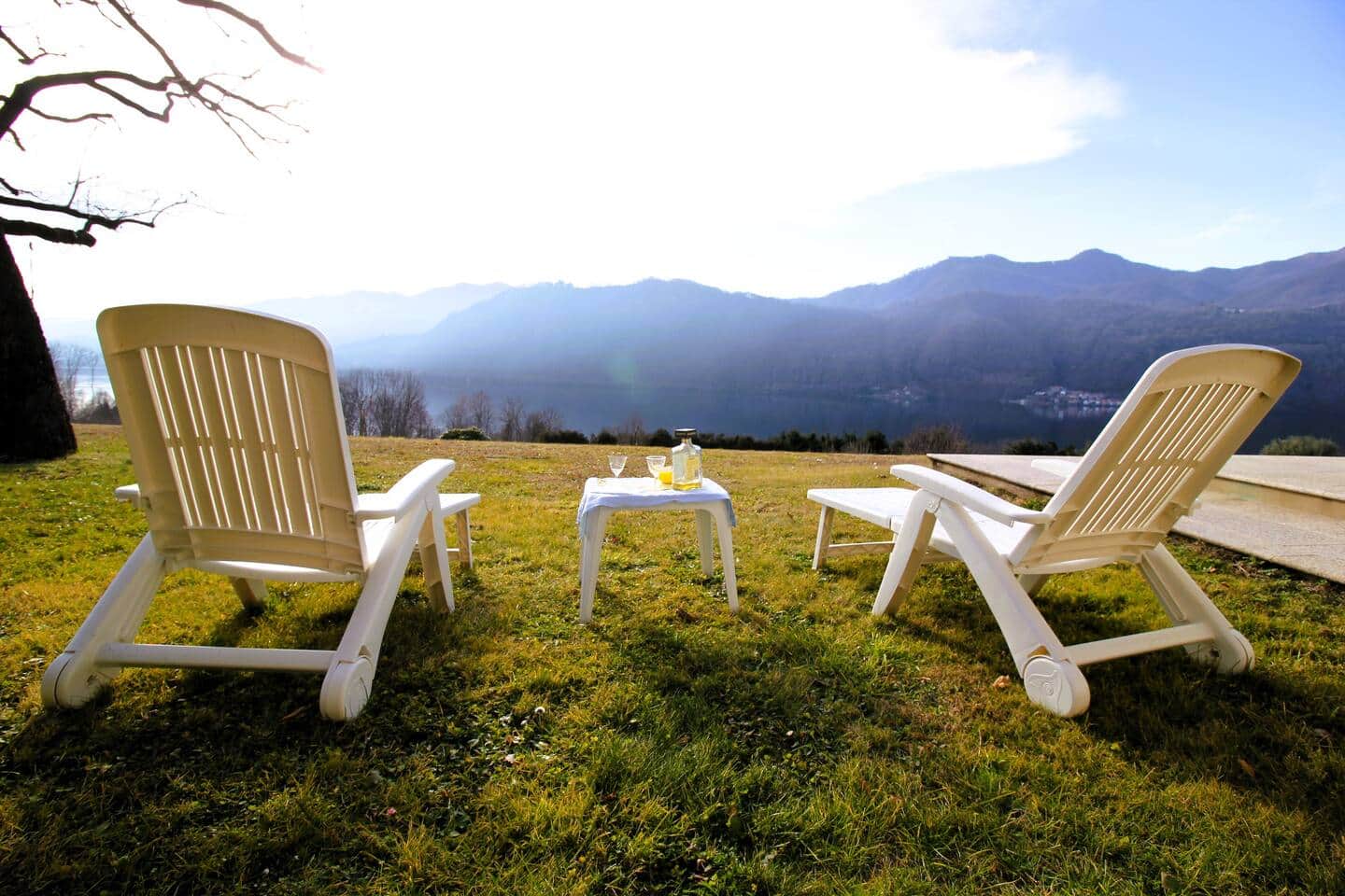 Nel grande giardino a cui si accede da tutte le stanze, avrete uno spazio riservato ed attrezzato con mobili da giardino (tavolo da pranzo, lettini ed ombrellone) per vivere la vostra vacanza in plein air ammirando lo stupendo panorama del lago d’Orta.
